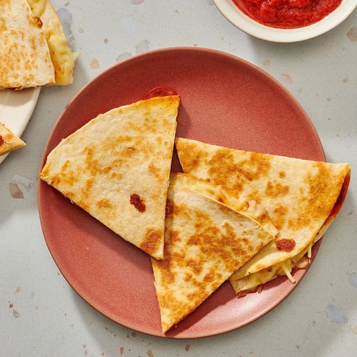When my husband and I needed a quick meal, I fixed this recipe using leftover ingredients. Unlike traditional Mexican quesadillas, it calls for Italian meats, cheeses and seasoning. Serve it with a green salad for a simple dinner for two. —Barbara Rupert, Edgefield, South Carolina
