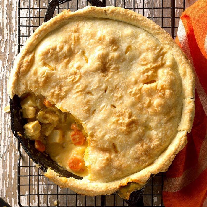 Cheese soup is one of my favorites, but it’s a bit too rich for my husband’s taste. Now I make a variation of potpie we both enjoy. If I’m in a hurry, I’ll skip the crust, add extra milk and serve it as a chowder. —Sandra Cothran, Ridgeland, South Carolina