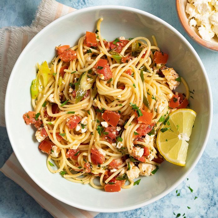 Imagine slurping up this summery dish al fresco on a warm night. You can even make the recipe a night or two ahead of time, then reheat it when you’re ready to serve.