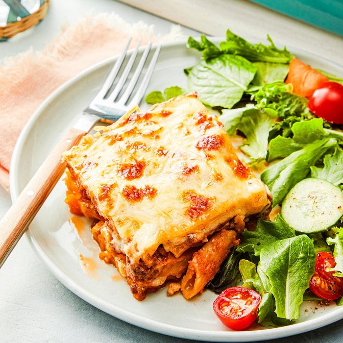 This easier version of a classic Greek recipe still requires a homemade bechamel sauce, so it’s best for intermediate cooks. To save time, don’t drain the beef or onions after you cook them. The sauce will be slightly richer, but because sirloin is lean, there shouldn’t be much fat in the pan.