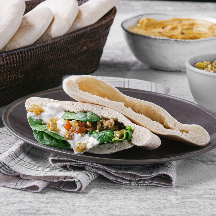 Our readers say the pita sandwiches are just as good if you substitute ground turkey or vegetarian crumbles. And because Greek recipes wouldn’t feel complete without them, add some olives to the mix.