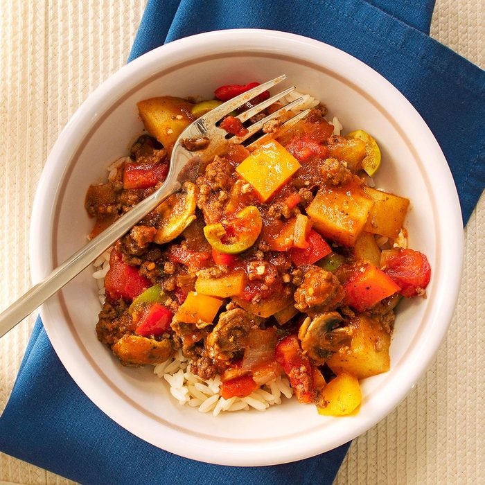 I love the mix of sweet and savory flavors in this hearty stew. It's the perfect blend of adventurous and comforting, and makes a fun dish to share with guests. —Trisha Kruse, Eagle, Idaho