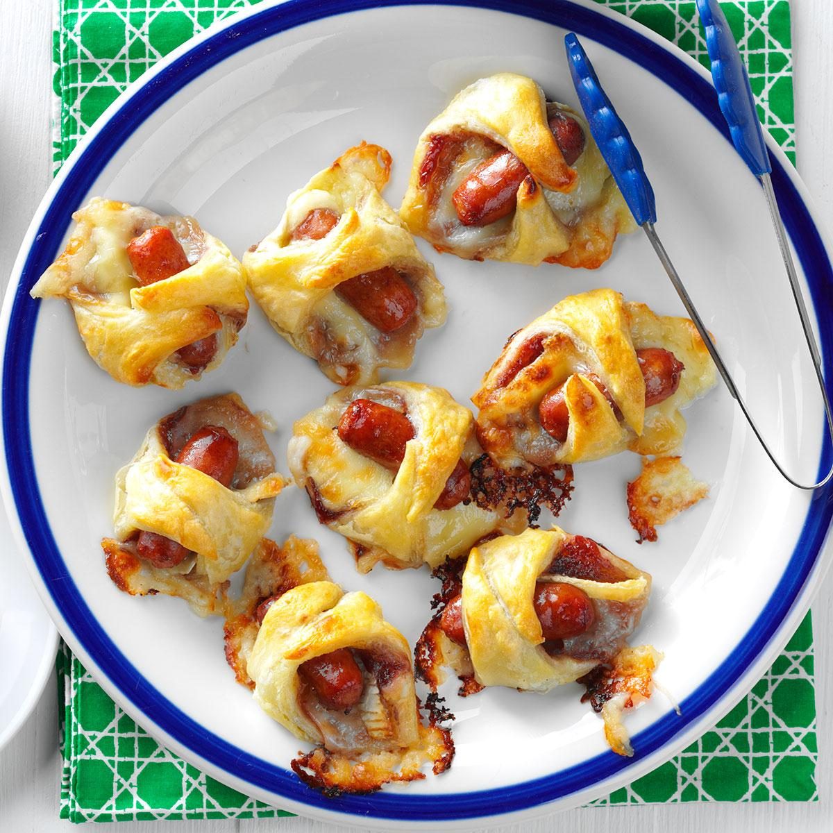 Your guests can’t eat only sugary treats. For a savory snack, whip up “babies in a blanket.” This recipe features raspberry jam, but you could sub in blueberry, too.
