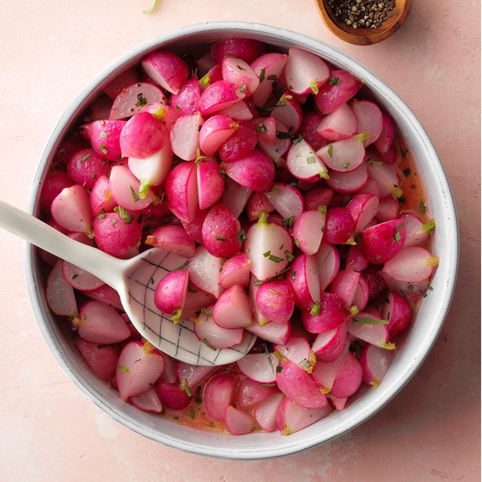 Who says radishes only belong in salads? These sauteed radishes are cooked in wine and tarragon, and may just change the way you look at radishes forever. They can be served on their own, or added to your favorite au gratin recipe. —Taste of Home Test Kitchen