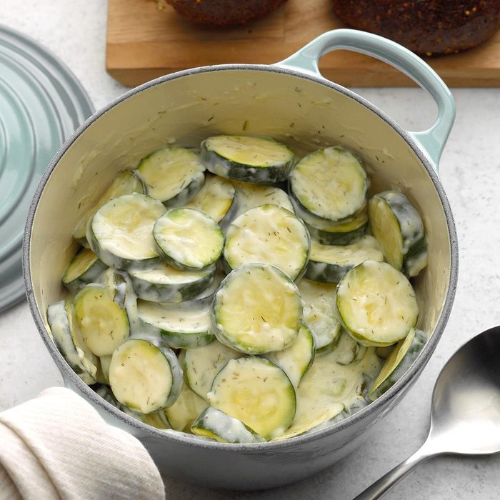You'll knock their socks off with this easy-to-prep side dish that's absolutely delicious. My favorite time to make it is when the zucchini is fresh out of the garden. —Sandi Guettler, Bay City, Michigan