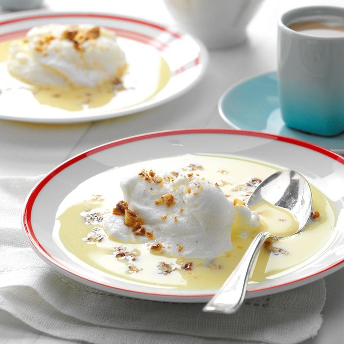 Meringue Snowballs In Custard