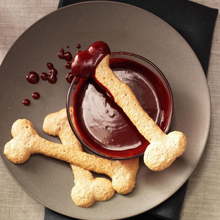 We have a bone to pick with whoever withheld this Halloween recipe from us for so long. The chocolate strawberry sauce is simple but thick enough to resemble blood.