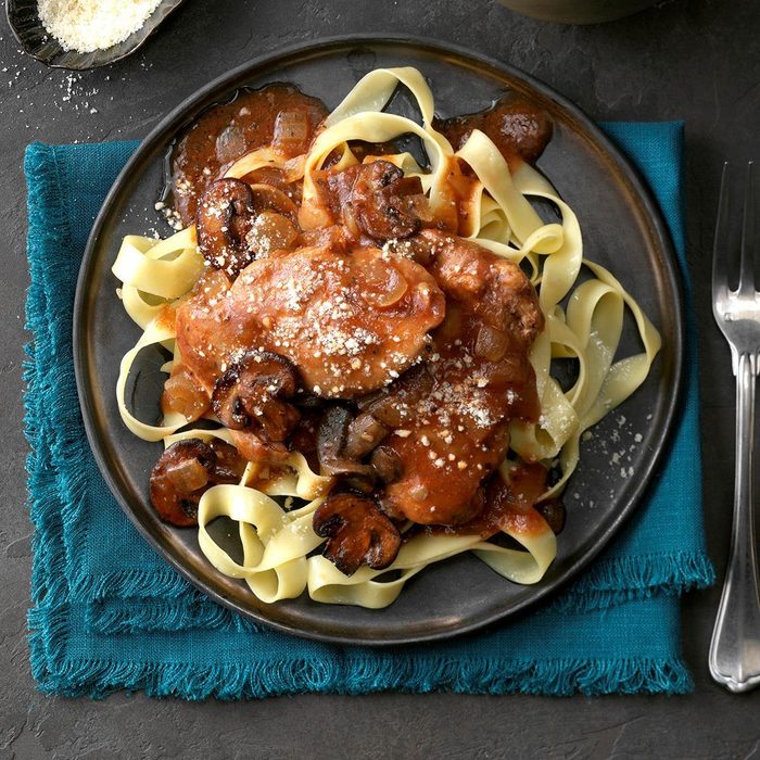 It looks impressive, but this mouthwatering chicken and mushroom sauce comes together in no time. I think its flavor rivals that of many full-fat entrees found in fancy restaurants. —Jennifer Pemberton, Muncie, Indiana