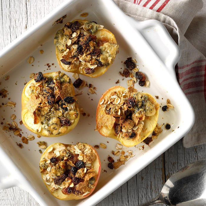 Want a dessert that’s a little sweet and a little savory? The surprise in these baked apples comes from a crumble of blue cheese in each apple’s center. The unconventional ingredient adds a delightfully tangy, savory flavor that pairs perfectly with the sweet apples and oat crumble topping.