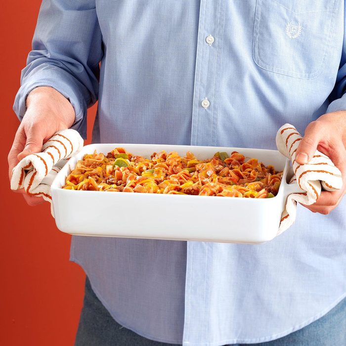 This hamburger casserole recipe is such a hit it's traveled all over the country! My mother invented the recipe in Pennsylvania, I brought it to Texas when I married, I'm still making it in California, and my daughter treats her friends to this oldie in Colorado. It's hearty, yet simple to prepare. —Helen Carmichall, Santee, California