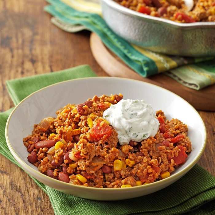 I’ve taken my mother’s healthy turkey chili recipe and made it thicker and more robust. It’s a favorite, especially in fall and winter. —Celesta Zanger, Bloomfield Hills, Michigan
