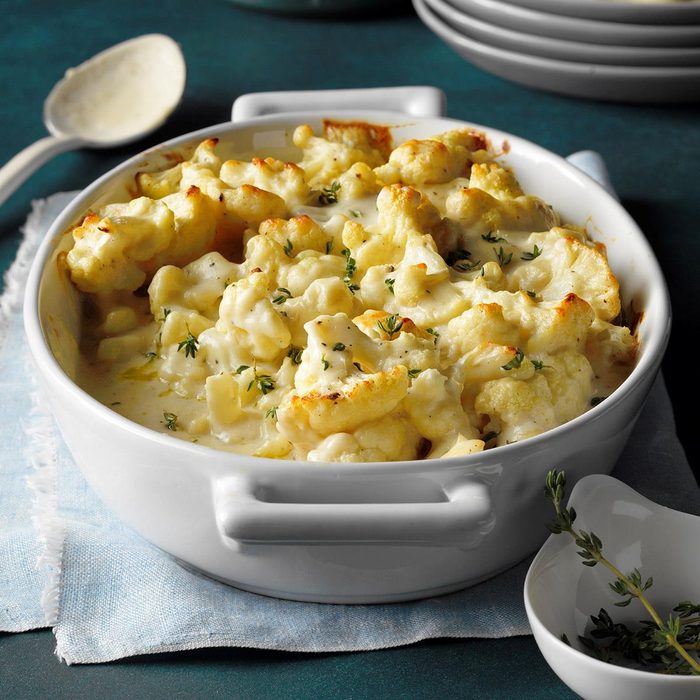 From the Recipe Creator: Cauliflower gratin is a lower-carb side dish that pairs well with pork, ham or beef. It’s so creamy and delicious that even the kids will ask for seconds! If you like a little crunch, sprinkle buttered bread crumbs over the top after 30 minutes of baking. — Mary Zinchiak, Boardman, Ohio