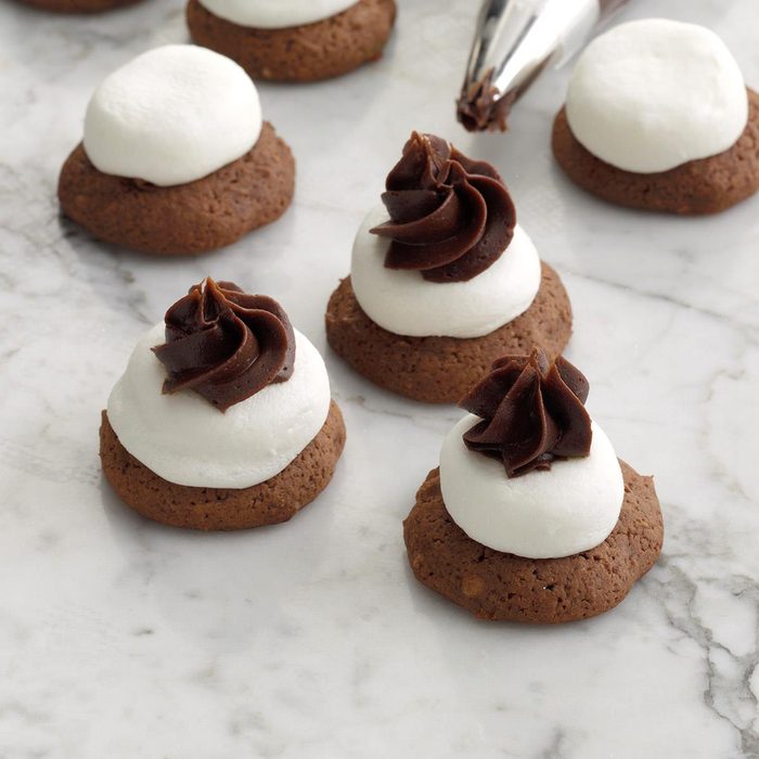 Cocoa, marshmallows and ready-made frosting transform the basic dough into these delightful treats. Sometimes, I’ll top each with a pecan half. —Gloria McBride, Payson, Utah