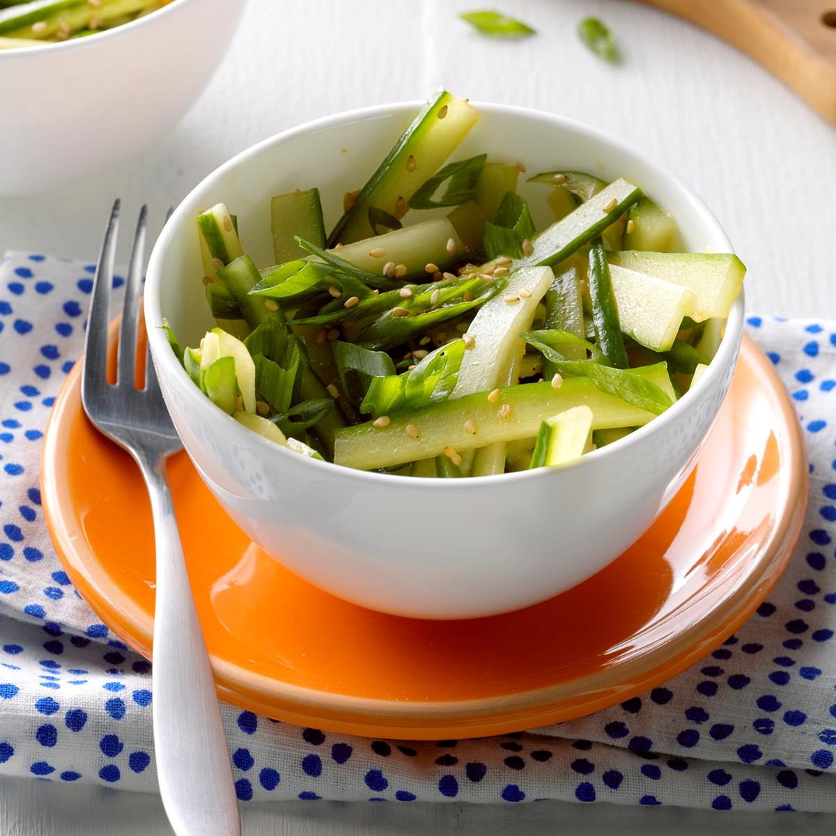 Japanese food is often served with pickled vegetables like cucumbers, daikon or radishes for crunch. Cucumber salad (known as sunomono) is an easy dish to make and enjoy throughout the week. Unlike other salads that wilt and get funky in the fridge, cucumber salad only benefits from sitting in the vinegar, sesame and ginger dressing for a few days.