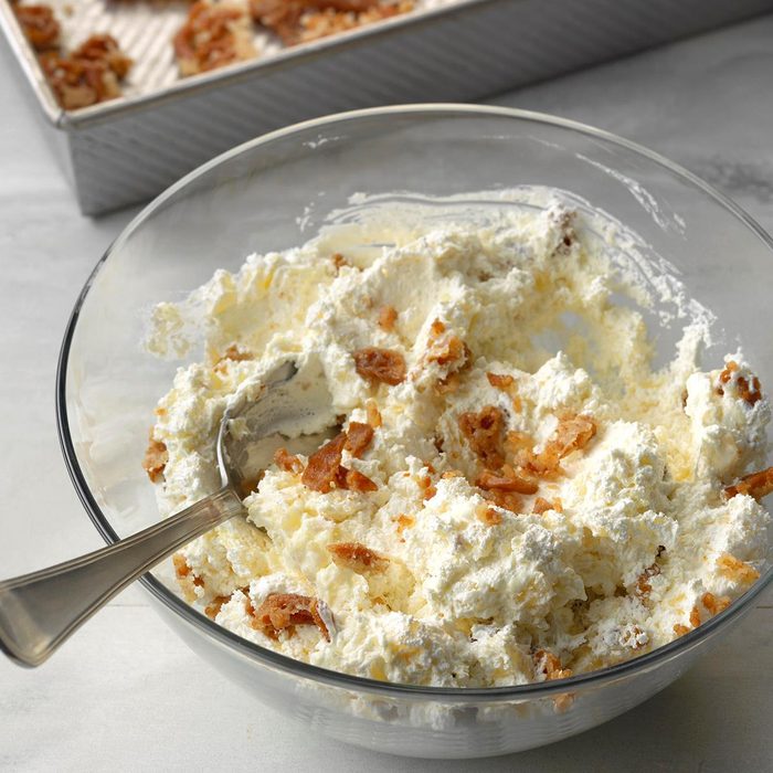 This pina colada fluff recipe is from one of my grandma’s vintage cookbooks. Instead of alcoholic rum, you could use rum extract. —Crystal Jo Bruns, Iliff, Colorado