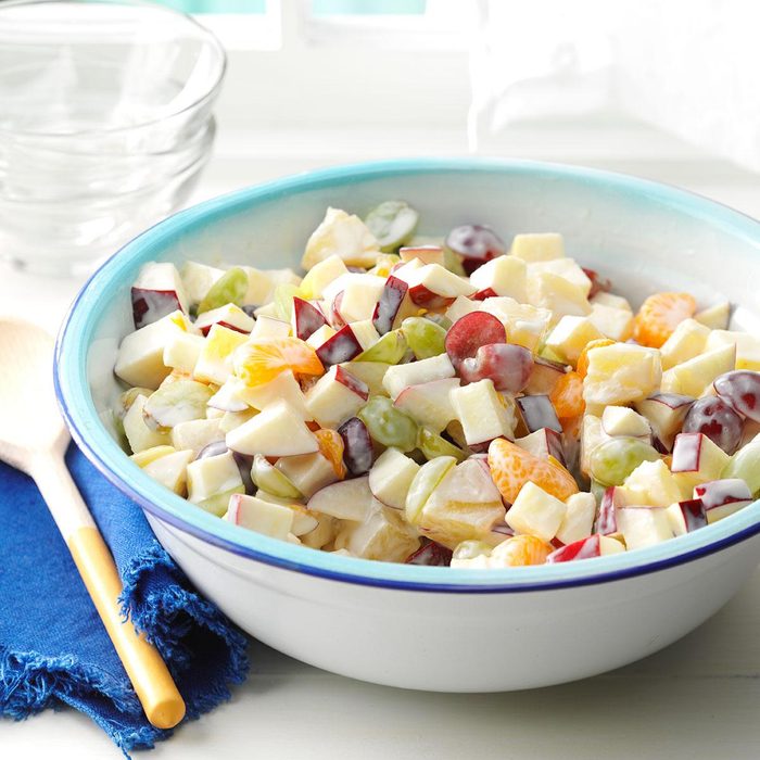 We first tried a cream cheese fruit salad like this at a local deli. Since I couldn’t get that recipe, I started mixing up different dressings until I hit on this one. Now I make this refreshing delightful salad for every picnic and get-to-gether. It can be a snack, side dish or dessert. —Connie Osterhout, Napoleon, Ohio