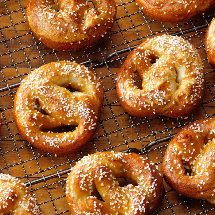 These homemade pretzels never last long around our house. My kids love to make them…and eat them! I serve them to company with a variety of dips, such as pizza sauce, ranch dressing, spinach dip or hot mustard. —Elvira Martens, Aldergrove, British Columbia