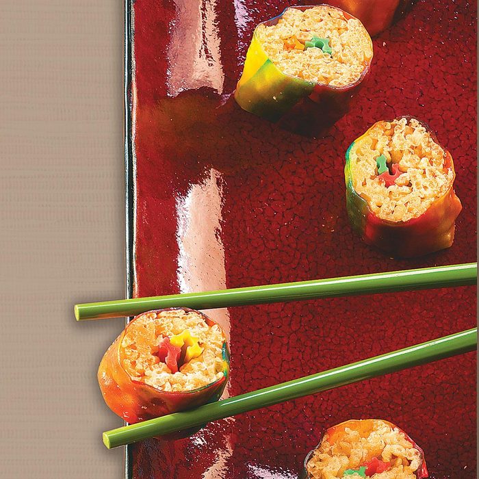 I’ve taken these fun mock sushi rolls to picnics and parties and served them at home with an Asian dinner. Kids always enjoy the bite-sized treats. —Lorri Reinhardt, Big Bend, Wisconsin
