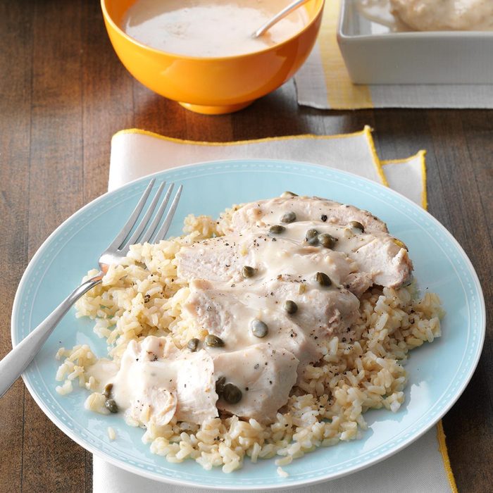 I needed an easy way to prepare my family's favorite meal, lemon chicken, and this recipe is it! My entire family loves this rich slow-cooker dish, and everyone who eats it asks for the recipe—it's a keeper. I serve the chicken over a bed of rice or couscous and spoon some of the creamy sauce over the top.—Nan Slaughter, Sammamish, Washington