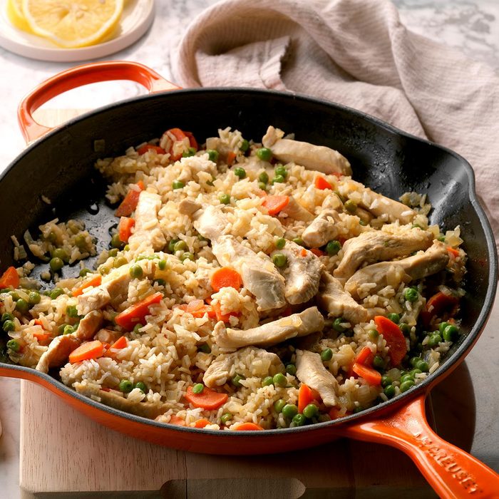 On our busy ranch, we often need meals we can put on the table in a hurry. This all-in-one chicken dish - with its delicate lemon flavor - fits the bill and it's inexpensive to boot. —Kat Thompson, Prineville, Oregon