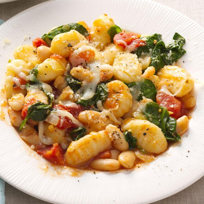 Here’s one of those no-fuss recipes you can toss together and cook in one skillet. Ideal for a busy weeknight, it’s also good with crumbled Italian chicken sausage if you need to please meat lovers. —Julianne Meyers, Hinesville, Georgia