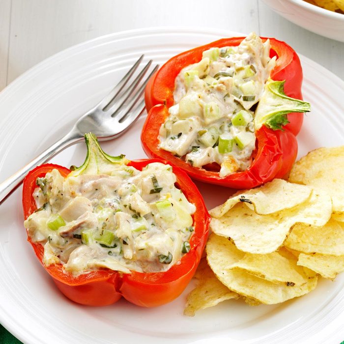 We love this recipe because it combines the fresh flavor of summer bell peppers and chicken salad. — Mary Marlowe Leverette, Columbia, South Carolina