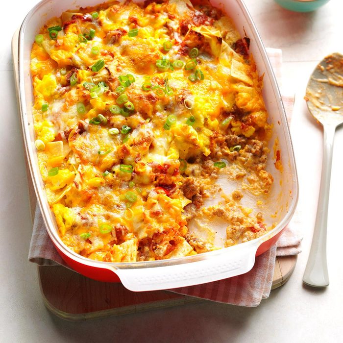 All the makings of a breakfast casserole are rolled up into enchiladas for an unexpected brunch dish! Serve with salsa, sour cream, pickled onions and cilantro, if desired.