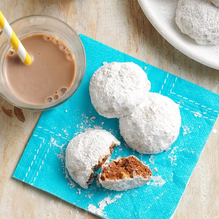 These spiced balls are a yummy twist on a traditional favorite. Sometimes I add mini chocolate chips to the dough and, after baking, dip the cooled cookies in melted almond bark. —Joanne Valkema, Freeport, Illinois