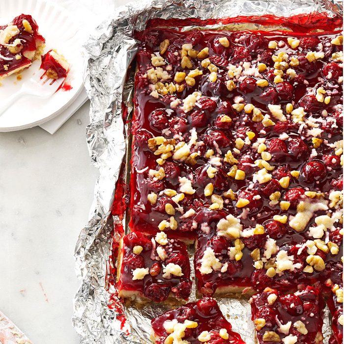 It’s rhubarb season, so now’s the time to try this rich and tangy cheese bar. It’s bound to be a hit with the rhubarb lovers you know. —Sharon Schmidt, Mandan, North Dakota