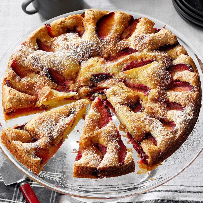 German immigrants brought kuchen recipes with them when they immigrated to the region. Now, kuchens of all kinds are some of the most beloved Midwest desserts. This one made with fresh plums is delicious, though you can swap in any stone fruit.