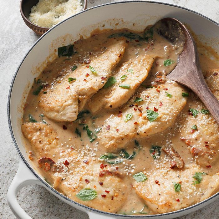 This recipe for swoon-worthy chicken will definitely show your mom you love her! Although this one-skillet meal is simple to make, the combination of sun-dried tomatoes, cream, Parmesan and spices creates an elegant and sublime sauce that outshines your typical chicken dinners.
