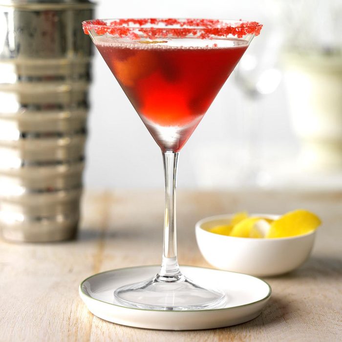 “Every soiree needs a signature drink. Sugar dresses up this simple cosmo that lets you enjoy a cozy evening with friends and still shake things up.” —Taste of Home Test Kitchen