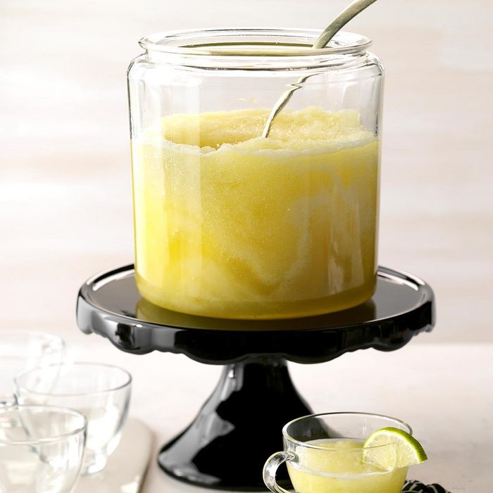 This citrusy slushie captures everything we love about a frozen margarita, but without the tequila. Just make sure to remove it from the freezer about an hour before serving or it’ll be too frozen to enjoy.