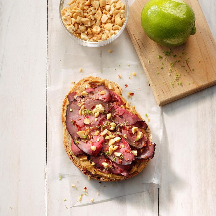 I love Thai food, but I wanted to see how its flavors would translate in a plain ol' peanut butter sandwich. The result is anything but plain—it's just darn delicious. —James Schend, Taste of Home Deputy Editor