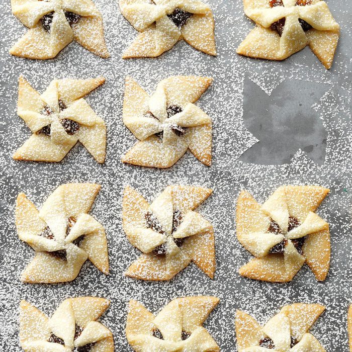 Rugelach is a classic addition to holiday trays. The flaky, buttery pastry slices encase a spiced fruit and walnut filling. —Laurie Klett, Hamilton, Michigan