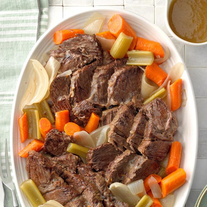 My family is of German Lutheran descent, and although we enjoy this traditional beef roast, I never liked the amount of time and fuss it takes to make it. This recipe is so good and oh-so-easy. It's great served with dumplings, spaetzle, veggies or a salad. —Norma English, Baden, Pennsylvania