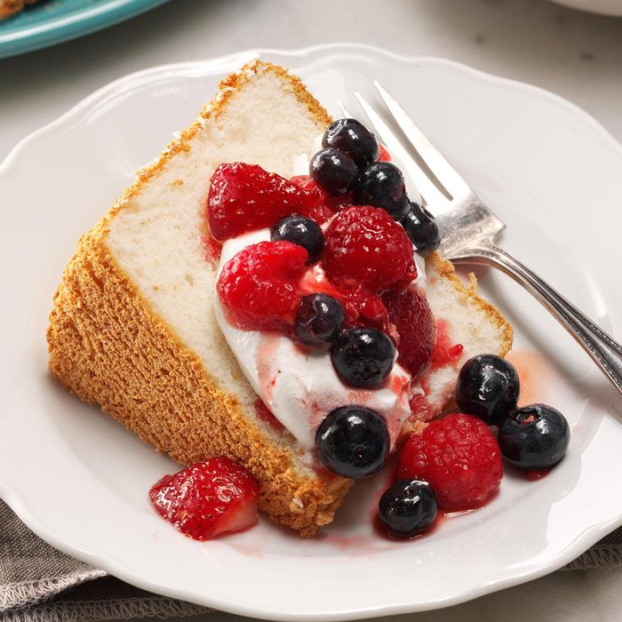 Angel food cake is everyone’s favorite blank slate for making awesome desserts. Serve it with a simple glaze or pile on fresh fruit, chocolate sauce or nutty sprinkles. —Leah Rekau, Milwaukee, Wisconsin