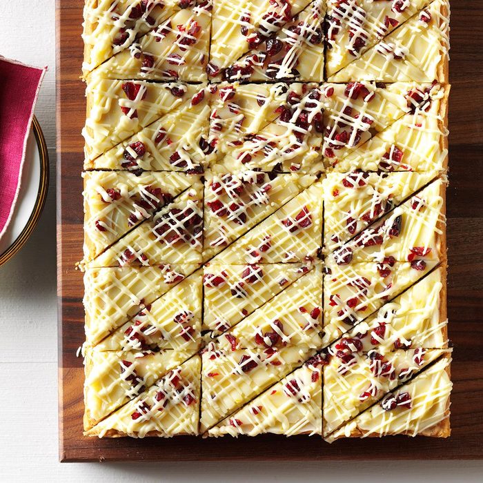 Friends sometimes ask me to make these for wedding receptions. For a fancier presentation, I cut the bars into triangle shapes and drizzle white chocolate over each one individually. —Erika Busz, Kent, Washington