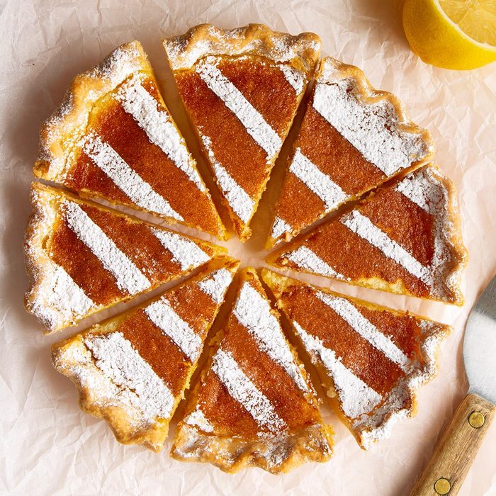 For a light, tangy and refreshing dessert, we turn to this nine-ingredient chess pie, which features ingredients you probably already have in your kitchen. Get extra fancy and top it with candied orange slices.
