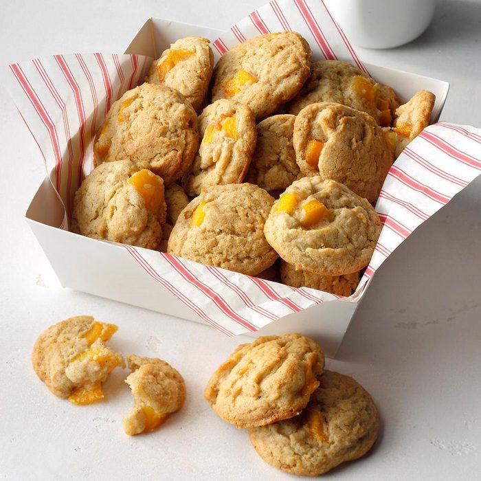 My sister brought me fresh peaches one year, and we decided to make these fruity cookies. They also make fantastic ice cream sandwiches—just put some vanilla ice cream between two cookies for a delicious summer treat! —Anna Miller, Churdan, Iowa