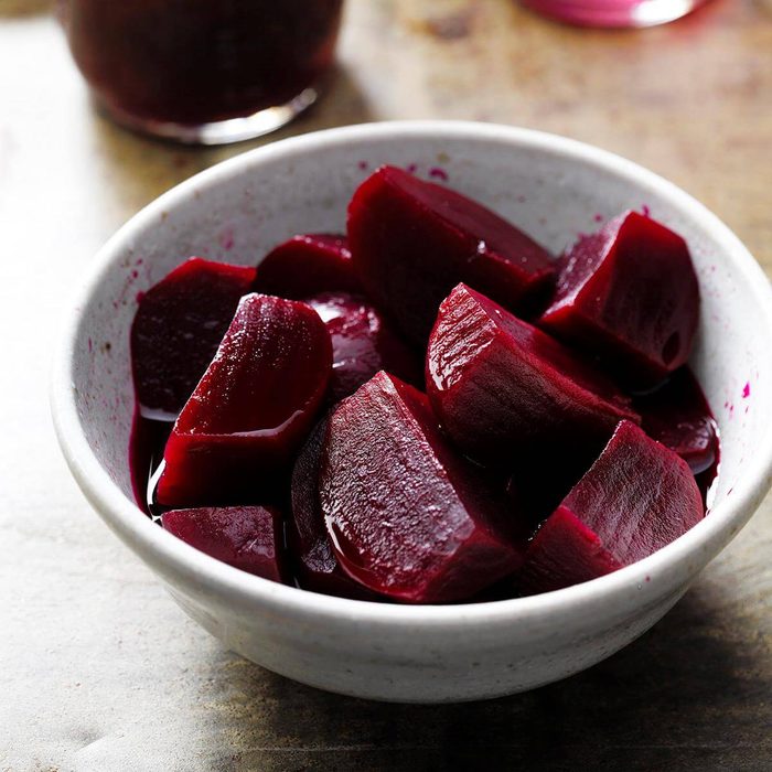 You might think that pickled beets are a food best left in the corner of Grandma’s fridge, but think again! This pickled vegetable is sour and a little sweet (as beets tend to be) and makes for a great garnish or even side dish. Give this pickled beet recipe—and these other beet recipes—a try. By the way, those who make pickled veggies frequently should keep this homemade pickling spice on hand.