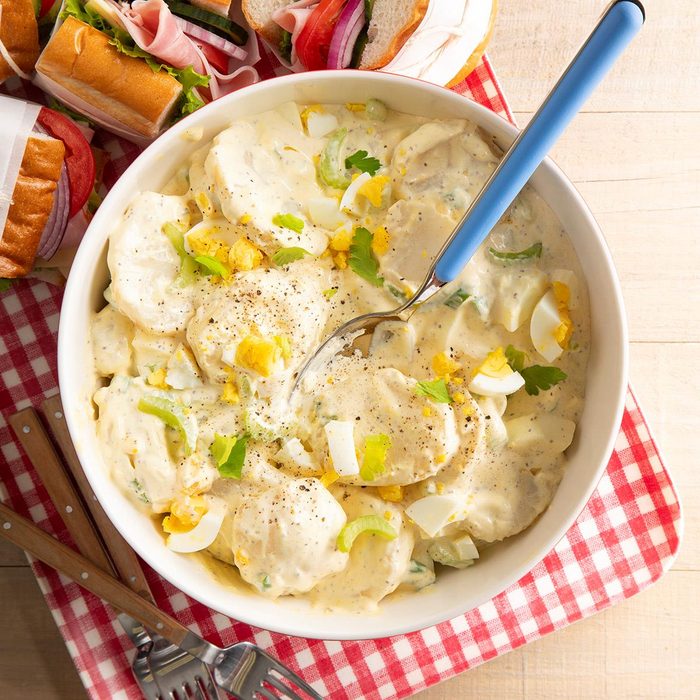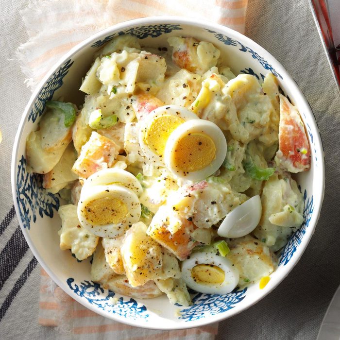 It isn't a summer cookout without potato salad, but the stuff from the deli just isn't our thing. I toyed with many recipes until I developed this one. Now if I even mention grilling or barbecuing, it's my family's top request for a side. —Paul Cogswell, League City, Texas
