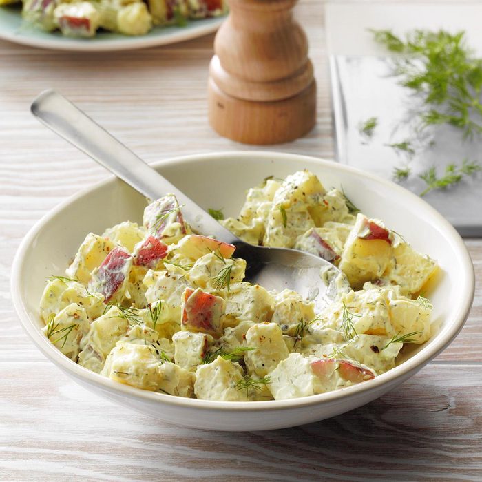This creamy dill pickle potato salad makes a flavorful and attractive addition to a Fourth of July picnic or church supper.—Nancy Holland, Morgan Hill, California