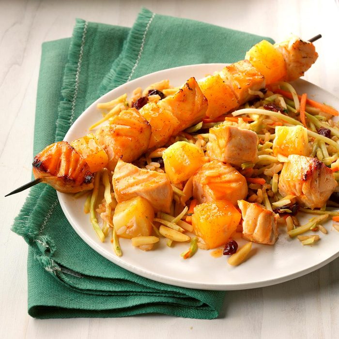 Korean Salmon Skewers with Rice Slaw