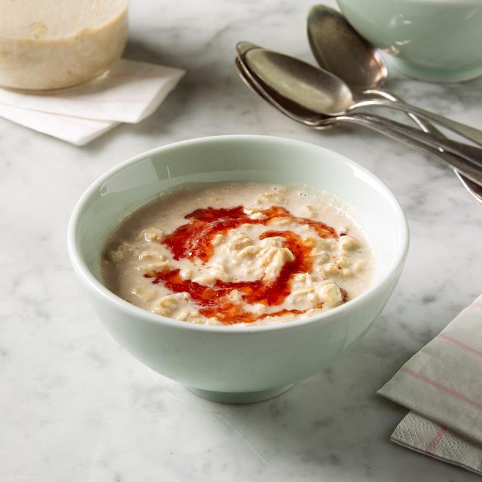 It’s almost hard to believe these decadent overnight oats are good for you. Peanut butter and chocolate? Yes! And with 10 grams of protein and 6 grams of fiber, you’ll feel full, satisfied and particularly luxurious, even if it’s just a random Tuesday.