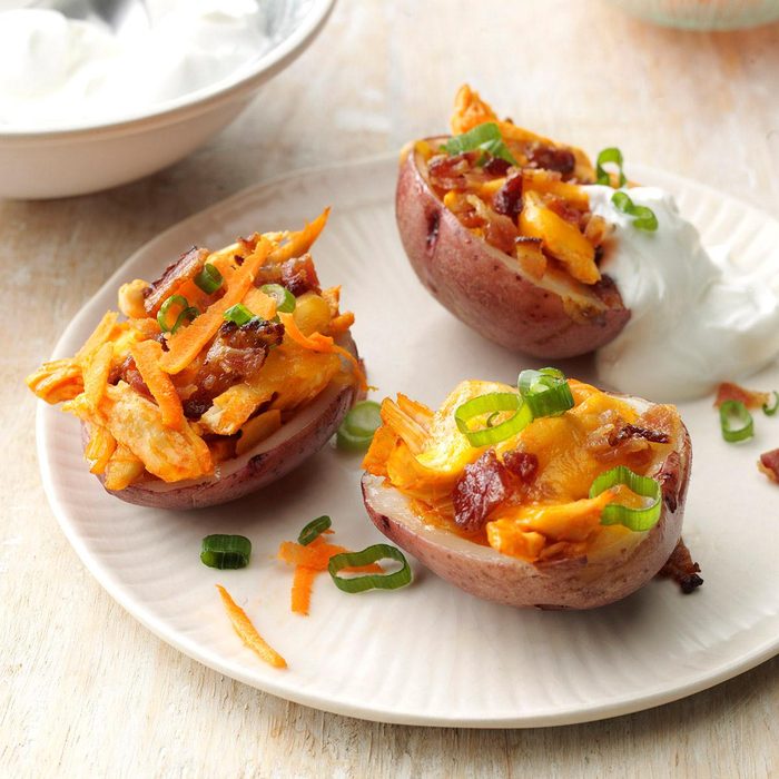 Wondering how to make potato skins taste great? Both crisp and hearty, this restaurant-quality snack is one that my family requests often. —Trish Perrin, Keizer, Oregon