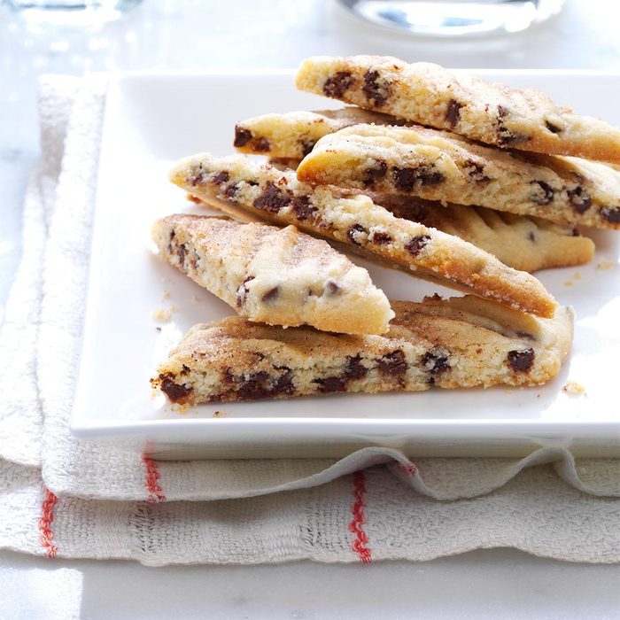 My best friend, Amber, taught me how to make this classic Norwegian dessert. They are a great mash-up of a sugar and chocolate chip cookie. A pizza cutter is the best tool for cutting into slices after baking. —Bonnie Brien, Surprise, Arizona