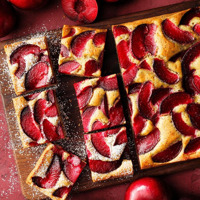 You can also use nectarines or even apricots in this recipe, but plums and poppy seeds are the most traditional Polish version of this dessert. One tip: Do not push the plums into the batter. Just let them sit on top. They will sink in a bit as they bake. —Lisa Kaminski, Wauwatosa, WI
