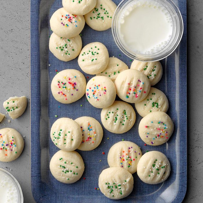 These whipped shortbread Christmas cookies melt in your mouth. Mostly I make them for the holidays, but I’ll also prepare them year-round for wedding showers and afternoon teas. —Jane Ficiur, Bow Island, Alberta