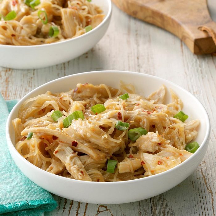 This family-friendly shredded chicken recipe will satisfy your pickiest of eaters. It can be served over noodles or rice.